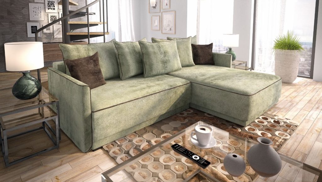 Narożnik z funkcją spania i dwoma pojemnikami na pościel