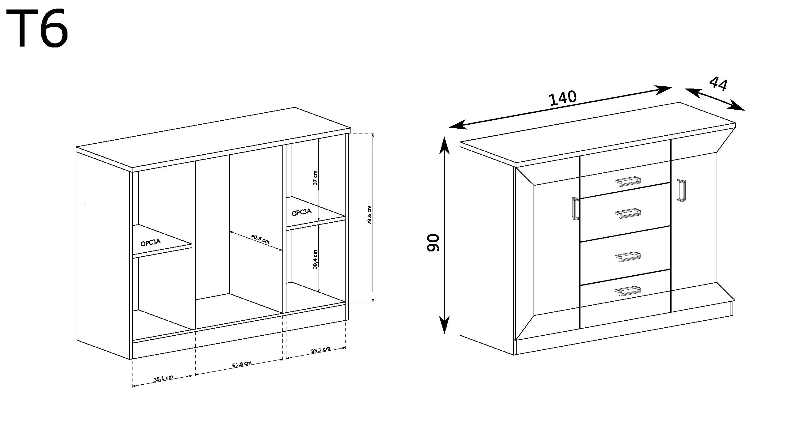 Wymiary: 140/44/90 cm